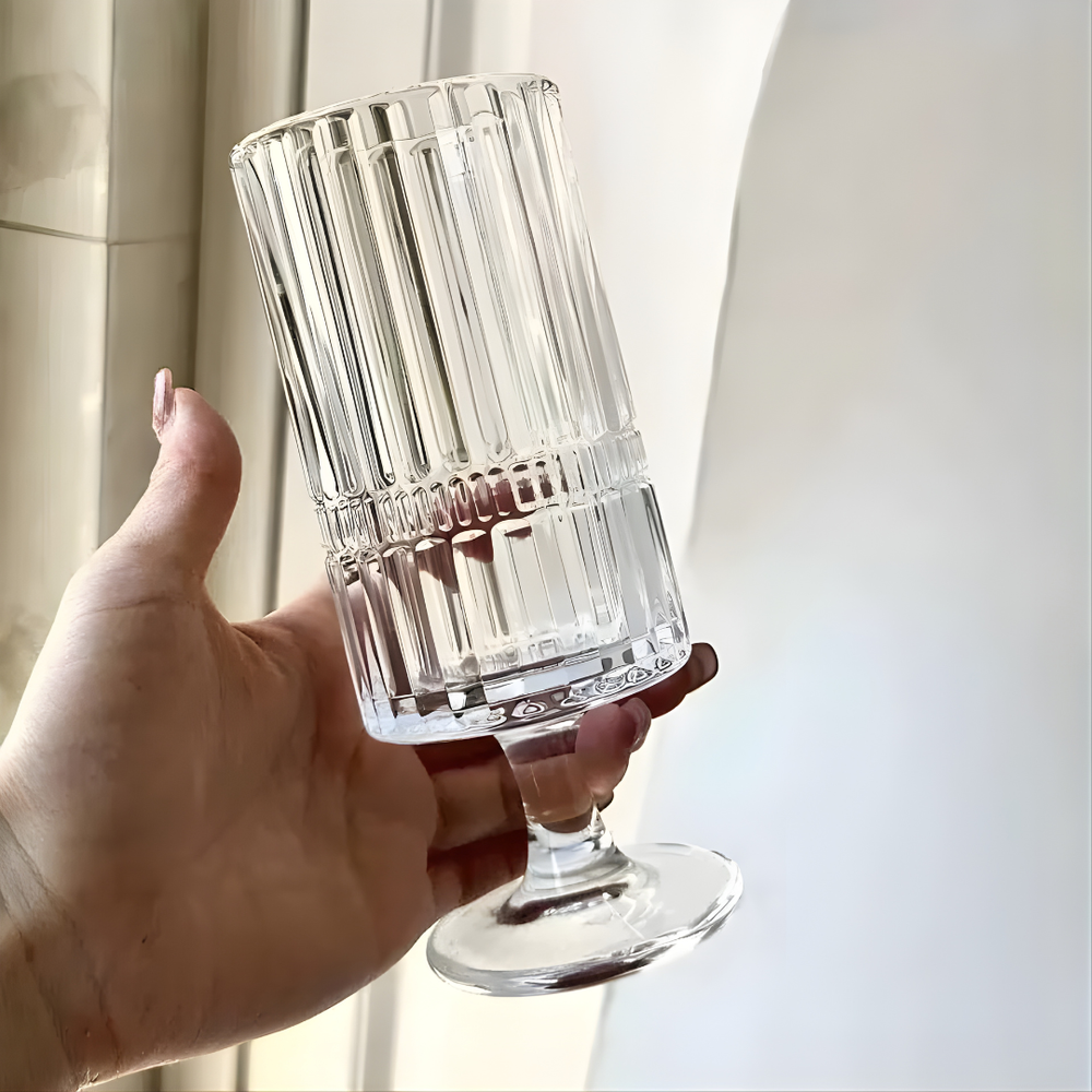 The sculpted curves and floral-inspired form catch the light beautifully, creating a soft, blooming effect with every pour. Whether placed on a dining table, bar counter, or coffee setup, these glasses instantly elevate the mood.