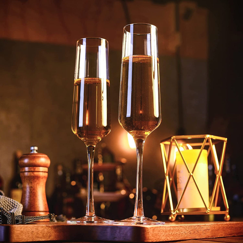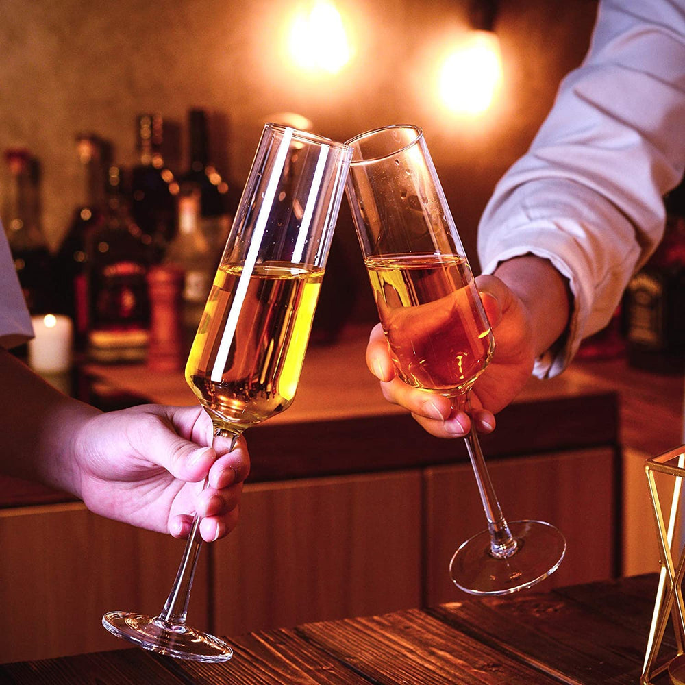 • Great wines deserve the right glass to bring out their distinct aromas and tastes. Our Vineyard wine glass collection offers a suite of glasses, each crafted with specially shaped bowls to enhance enjoyment of white, red and sparkling wines. The narrow profile of this slim Champagne Flute Glass prolongs the bubbles of fine champagne, prosecco and other sparkling wines.