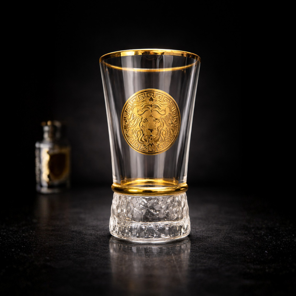 Bold, regal, and unapologetically luxurious — the Lionheart Gold Crystal Tumbler is crafted for those who appreciate power and refinement in every detail. Featuring a striking gold lion emblem and elegant gold rim, this tumbler commands attention while maintaining timeless sophistication.