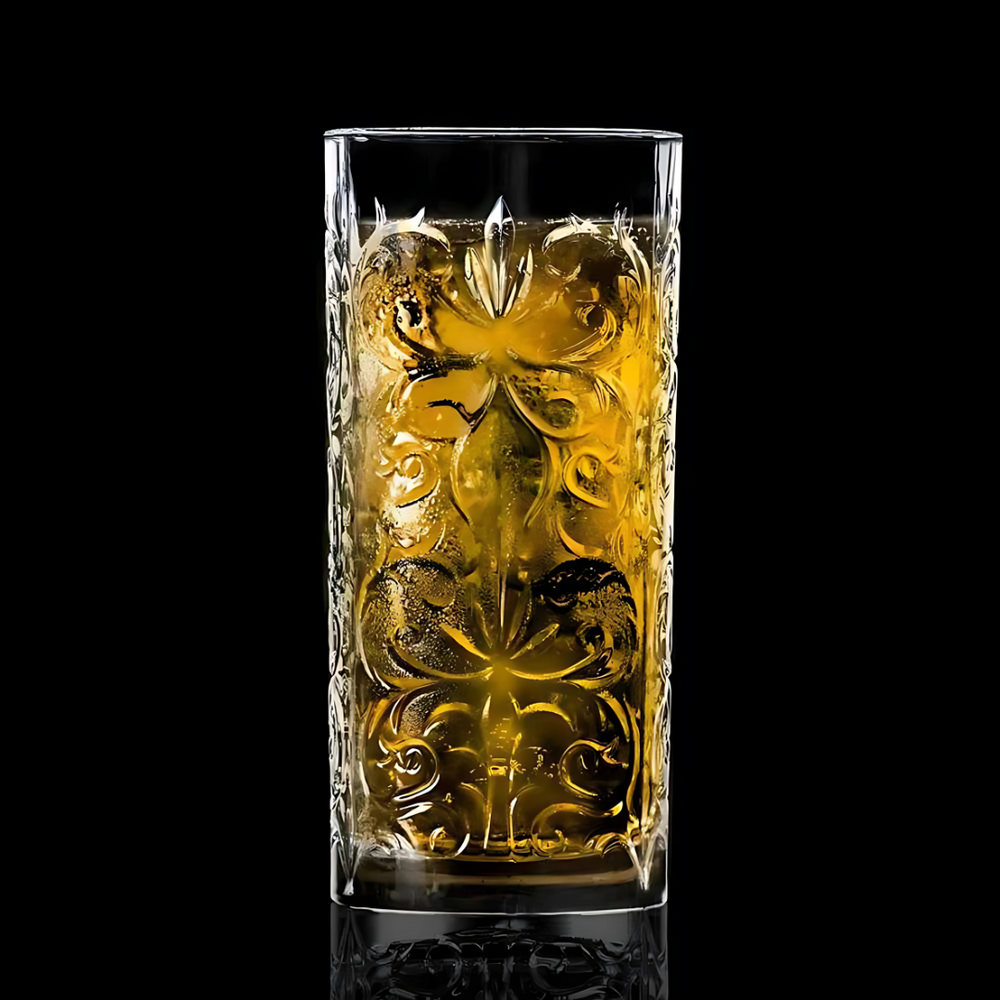 Whether it’s a refreshing mojito, a classic gin and tonic, or even a simple chilled soda, the Tattooed Hi-Ball Glass ensures your beverages are enjoyed with character and flair.
