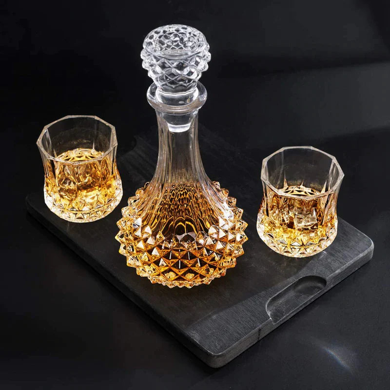 2. Matching Euro Glasses: Complementing the decanter are the matching Euro glasses, designed with intricate details that mirror the elegance of their European counterpart. Each glass is a testament to both form and function, ensuring a luxurious drinking experience.